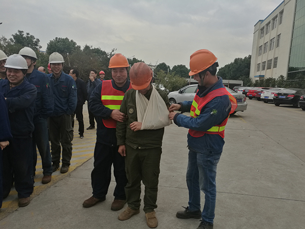 2016年11月9日下午, 由公司聘请的新加坡顾问Jason的带领下,对全公司进行了“安全生产应急救援演练”活动,公司常务副总经理夏总,生产安全分管副总龚总,分别总结本次演练,并结合公司各厂生产安全情况和员工生产安全意识,对车间安全形势和今后的要求发表讲话,总结经验,改进不足,促进工作,进一步提升我公司安全生产应急管理能力。 一、演练工作的基本情况和特点 1、领导重视、组织健全,启动快速。 2、体现特色、“真实安全”、重点推进。 二、演练的实施(模拟突发事件疏散,伤员包扎救护) 1、突发事件疏散,搜索伤员包扎演练。 2、总结经验,教育预防为主。 三、取得的具体成效