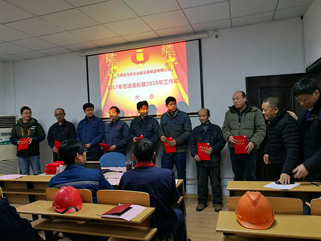会议对获得2017年度公司员工、质量奖、销售奖和节约奖员工和创新奖团队进行了颁奖,员工代表发表了获奖感言。