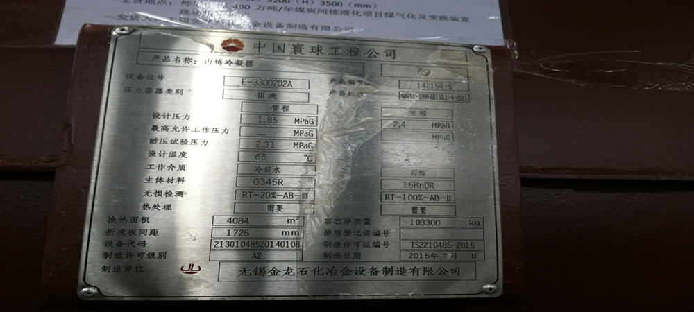 设备名称:丙烯冷却器